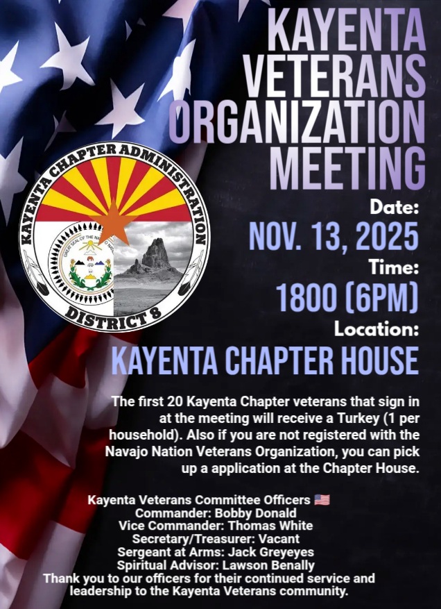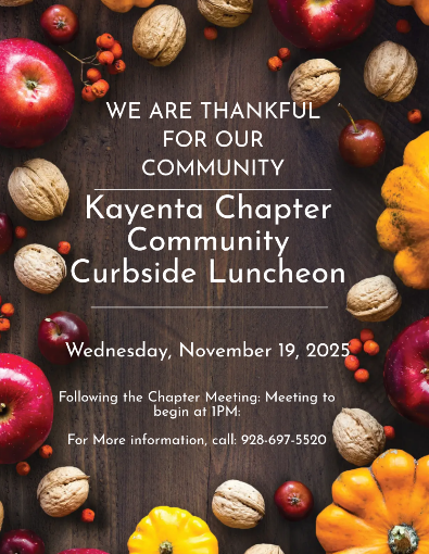 Kayenta Chapter Meeting, Wednesday, November 19, 2025, 1:00pm